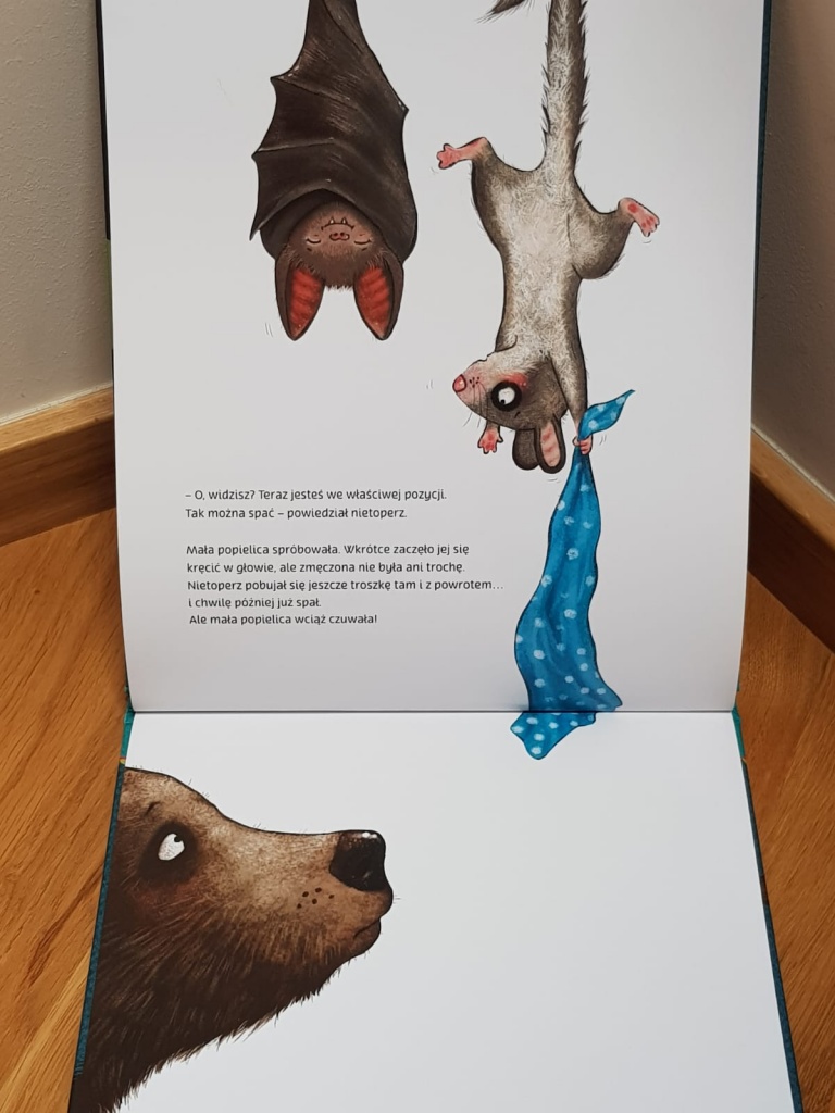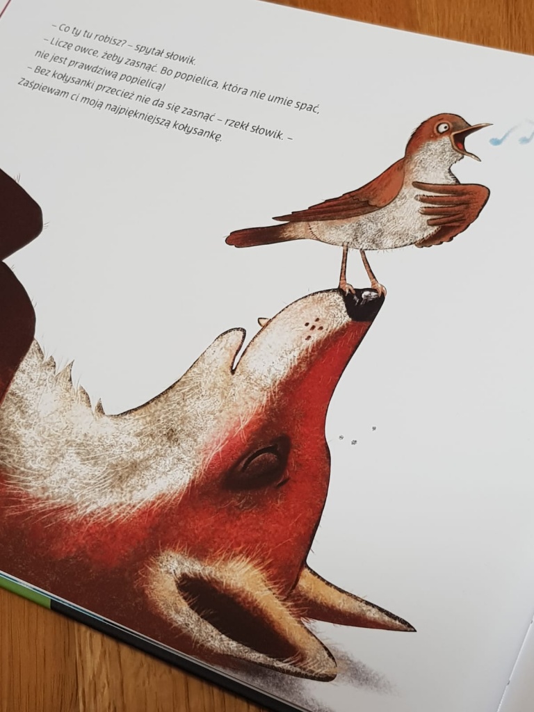 Na kolejnych stronach spotykamy różne zwierzęta, które dzielą się z popielicą swoimi sposobami na szybkie zasypianie. Żaden z tych sposobów nie jest skrojony na miarę potrzeb bohaterki. Okazuje się, że nikt prócz niej samej nie jest w stanie jej pomóc. Że gotowość do zaśnięcia pojawia się wtedy, gdy zanadto nie koncentrujemy się na trudności w zaśnięciu. Gdy nie mamy względem siebie oczekiwań i nie wywieramy na siebie presji. Gdy mamy w sobie przestrzeń na zmęczenie, oddech i przyjemne wrażenia.