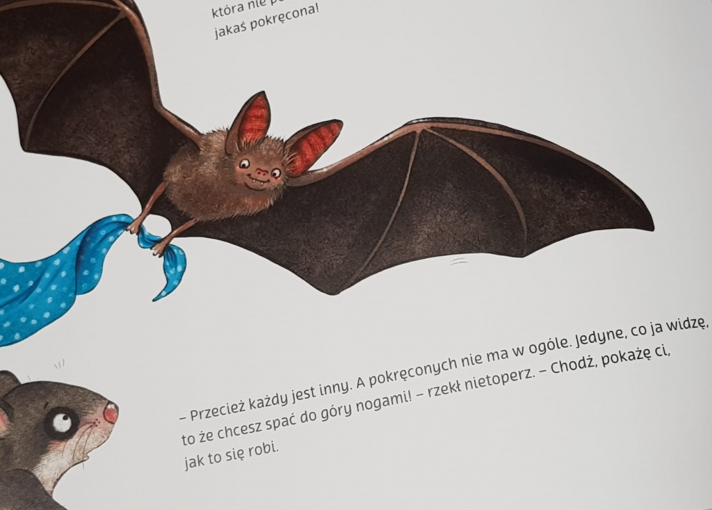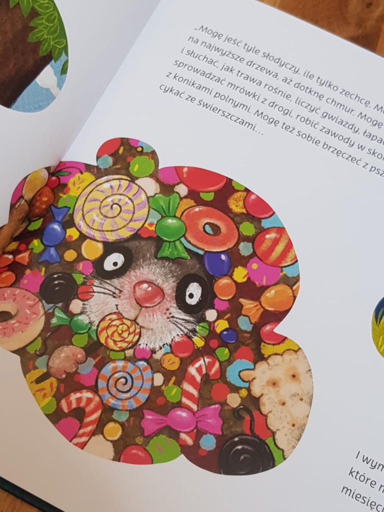 Wydawnictwo Mamania dołączyło do listy wydanych przez siebie książek kolejną, pięknie zilustrowaną perełkę. Duże, delikatne w kolorach ilustracje, sporych rozmiarów format książki, ciekawe zabiegi we wnętrzu (z powodu których czytelnik ma okazję poodwracać sobie książkę) sprawiają, że jest ona wyjątkowa.