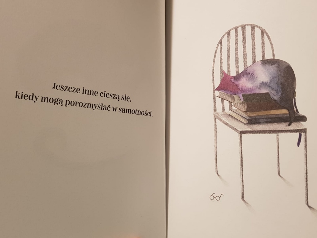 Trudno byłoby docenić zalety dnia bez nocy. Trudno byłoby się zmuszać do lubienia towarzystwa, gdy najbardziej cenimy sobie własną obecność. Gdyby wszyscy łaknęli bycia w grupie z tym samym natężeniem i potrzebą ekspresji, mogłoby zrobić się trudno. Być może głośno i tłoczno. Wszyscy jesteśmy na tym świecie ważni i potrzebni. Jesteśmy PO COŚ. Mamy COŚ ważnego do zrobienia. Co? ŻYCIE… – kończysz swą opowieść i zamykasz książkę.