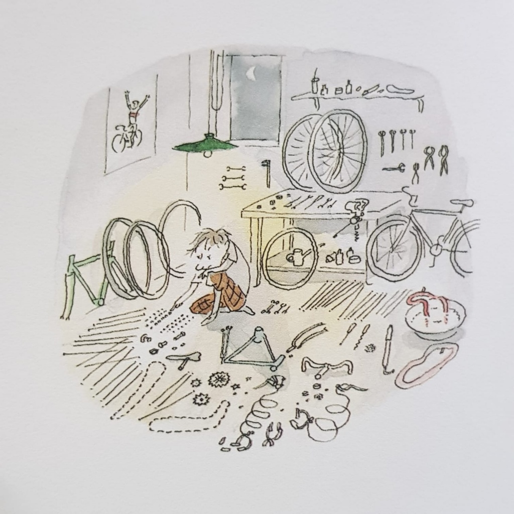 Główny bohater, jak nikt inny w jego miejscowości, zna się na rowerach.