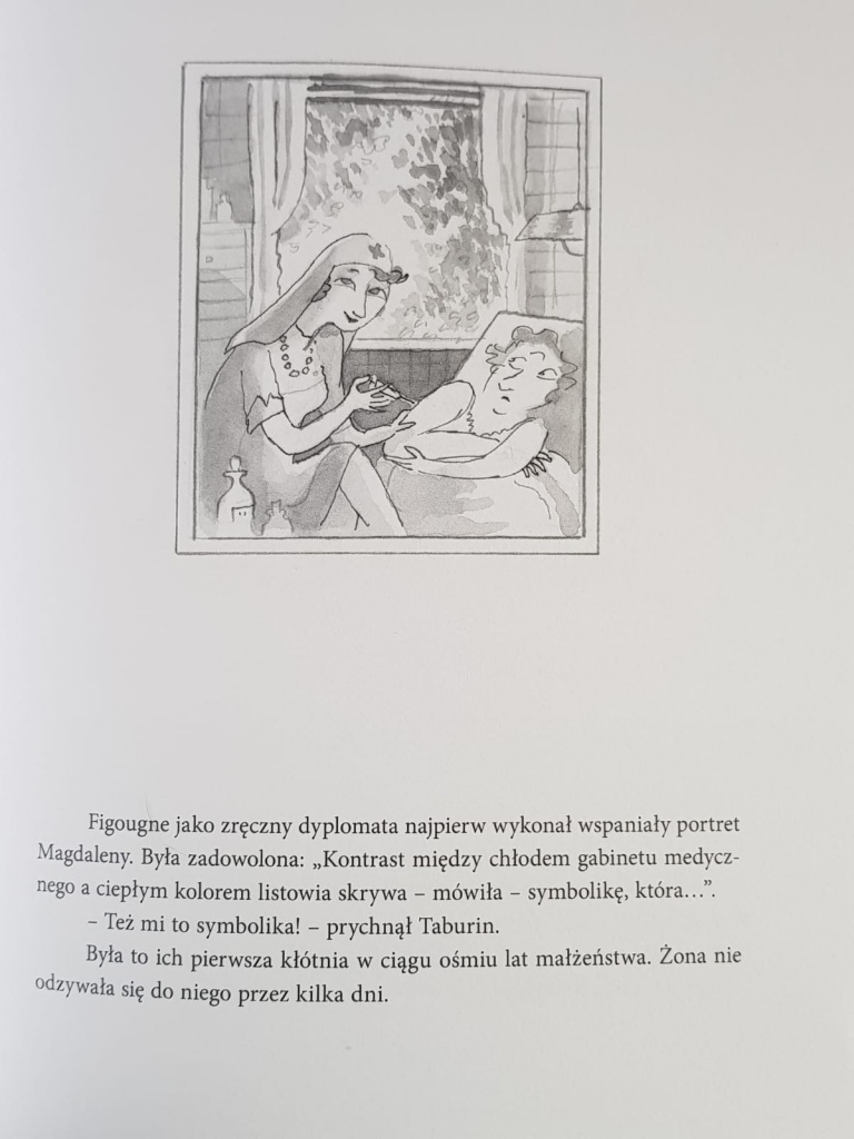 Bardzo zachęcam Was do zanurzenia się w tą symboliczną, subtelnie i charakterystycznie dla rysownika zilustrowaną opowieść. Nie tylko skłania do myślenia, wywołuje wiele refleksji ale też cieszy oczy bogatymi w szczegóły obrazkami. W czytanych przeze mnie książkach lubię odkrywać coś, co mnie poruszy, wzruszy, skłoni do przemyśleń. Lubię cieszyć swoje oczy obrazami. Lubię po lekturze je zamknąć i przez chwilę pozostać w świecie bohatera, z którym spędziłam trochę czasu.